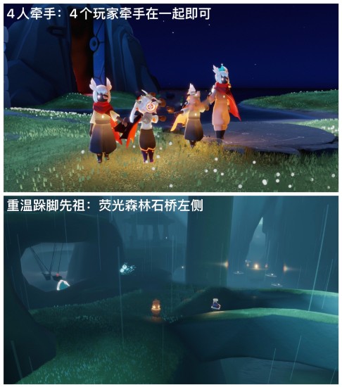 在雨林最后一个地图有四座亭子的地方向右看,进入洞中即可找到先祖。点亮先祖后即可成功完成在雨林重温先祖的美好回忆任务。