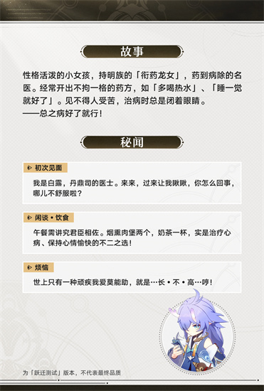 角色精准定位:白露是一名富饶命途的雷属性角色。