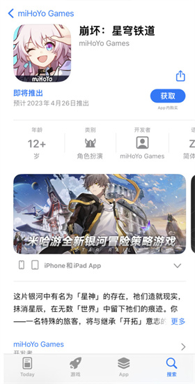 根据App Store的预约界面显示,《崩坏:星穹铁道》将会在4月26日正式上线,届时大家可以体验到这款崩坏系列的全新大作。