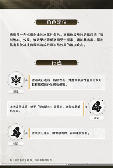 角色定位:彦卿是一名巡猎命途的冰属性角色。