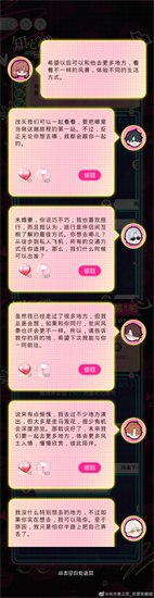 光与夜之恋知心遂愿怎么选择心愿?光与夜之恋是一款有趣好玩的手机游戏,游戏的画面风格是唯美浪漫的,每一帧都可以保存作为壁纸,同时配合绝佳的背景音乐和特效声响,多支线剧情的展开,每一个选择都会影响故事的走向,让玩家不禁沉浸于游戏当中,一流的编剧和花家,绘制出独特的爱情故事,圈内专业的声优为游戏任务配音,增加角色的立体感。那么到底光与夜之恋知心遂愿怎么选择心愿?光与夜之恋知心遂愿活动中,玩家需要根据选项选对回答才能拿到奖励,五个心愿一览,每张图分别对应一个选项,为了帮助不清楚的小伙伴能够更好地了解这次知心遂愿的详细心愿内容选择情况,所以下面就为大家带来光与夜之恋知心遂愿活动攻略,感兴趣的小伙伴们就一定不要错过啦!