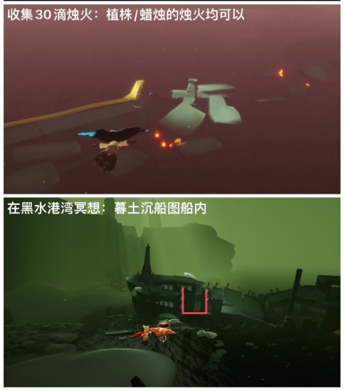 光遇2.15 每日任务是什么?光遇是一款有趣好玩的手机游戏,游戏中玩家将感受到前所未有的游戏体验,在唯美清新的云海中和心爱的人在旷世王国中展开一场治愈的旅行,著名的游戏设计师时隔多年后带来的游戏佳作,在晴空和云海之中翱翔追逐梦想,与云同行,与爱共鸣。那么到底光遇2.15 每日任务是什么?在星盘上,点击要送心的好友。可以看到右侧的爱心信封,连续点击三下。在弹出来的提示框中,按下√即可完成送礼任务。进到一龙图就可以看得到。同样是点火重温先祖的回忆,再跟随先祖取回过往记忆。在游戏地图中累计找到30点烛火收集即可完成任务。直接来到黑水港湾的沉船位置,最后进入沉船就可以看到冥想点了。所以下面就为大家带来光遇2.15每日任务完成攻略。
