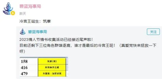 这次来自碧蓝航线的统计,还是很有权威性的,统计看看哪位舰娘是这次情人节活动中,作为秘书舰数量最少的,没想到SSR中这三位原本强度还不错,而且造型设计上也很优秀的妹子,反而被指挥官打入了冷宫中