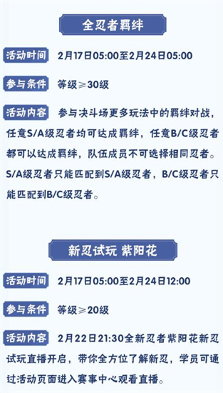 火影忍者手游紫阳花什么时候出?火影忍者手游是一款由万代南梦宫正版授权,腾讯研发的唯一正版火影格斗手游,游戏采用动漫情节作为游戏背景,讲述了漩涡鸣人为了保护忍界理智成为火影的故事,玩家可以成为原著的角色来保护好忍者的世界,游戏拥有多种元素,感受游戏的多元化。那么到底火影忍者手游紫阳花什么时候出?护送任务,同心协力挑战评级;全忍者羁绊,体验畅快淋漓的忍者格斗;春日轻松季,轻松无压力;好运连连,抽宝珠大奖兑忍者碎片;手鞠[忍界大战]限时返场。活动内容:2月22日21:30全新忍者紫阳花新忍试玩直播开启,带你全方位了解新忍,学员可通过活动页面进入赛事中心观看直播。所以下面就为大家带来火影忍者手游紫阳花忍者试玩抢看 ,感兴趣的小伙伴们就一定不要错过啦!