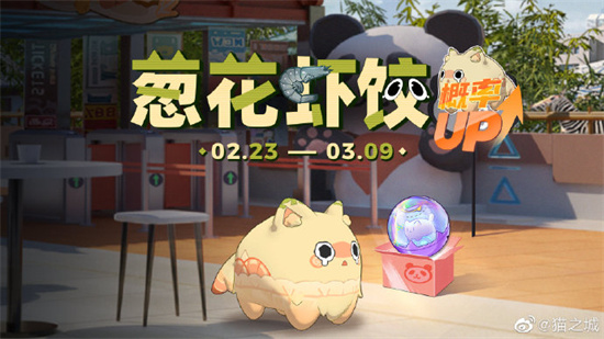 活动期间,将开启「葱花虾饺」主题猫球的限时孵化概率UP,活动期间完成任务即可获得主题猫球「葱花虾饺」。